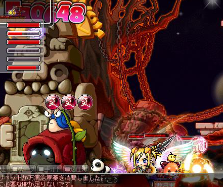 なにしてるかわからないお!左にいるのはボス戦、グル狩り中に大活躍するデンデンさんです。気力マックスだと、一時間くらい狩っていても持ってくれます!