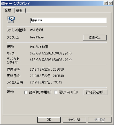 コンピ「ファイルプロパティ見てみ」