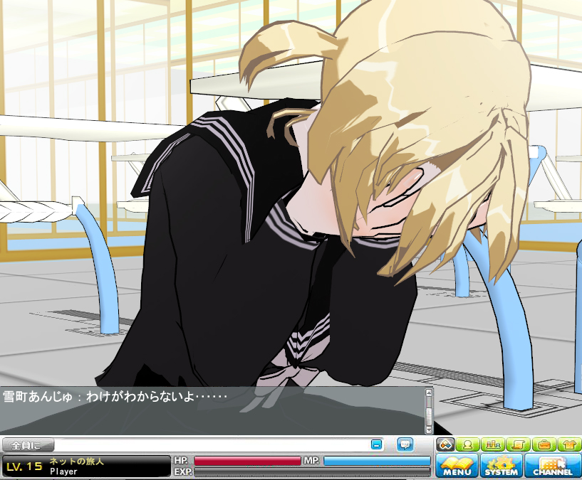 そして、画像を見て気づいた方が居たら拍手を差し上げたいですが、あんじゅのアバターがレギオンドレスからセーラー服に変わってます。