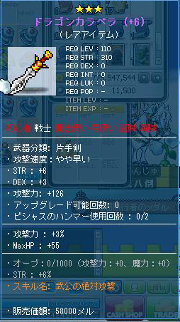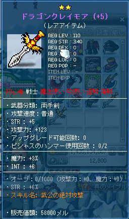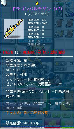 魂の書は、大工の魂で装備につけることができないので、魂の書を貼り付けるのは自分の装備できるものに限られてくるのですが……このドラゴンサクス、戦士も装備できます。