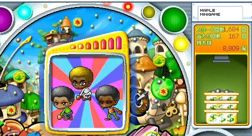 さて、話は飛びますが、以前『パチンコの帝王』という称号を得ていた私ですが、最近どうもうまくパチができませんねー。あ、メイプル内のミニゲームですよ?